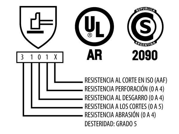 NORMATIVA Norma EN 420:2003 + EN 420 A1:2009 + EN 388:2016CON CERTIFICACIÓN QUÍMICA: ISO 374-1 Tipo B