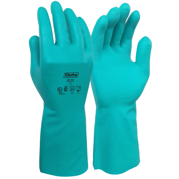 Con palma de diamante y puño recto, largo 320mm.100% de caucho acrilonitrilo de butadeno puro. Flocado. Espesor 15 mil.