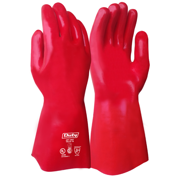 El largo del guante 35cm brinda al usuario protección de la mano y antebrazo en trabajos con sustancias químicas que requiera la inmersión en profundidad.