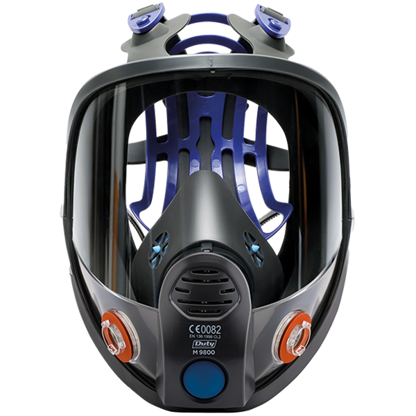 La máscara Full Face Duty 9800 talle M y 9900 talle L, es una pieza Facial con sello facial, copa nasal y arnés de 6 puntos y soporte para la cabeza con un complemento de PPE para mejor ajuste. Este producto protege a las vías respiratorias de partículas sólidas y líquidas, vapores y gases. Sus conexiones tipo bayoneta son compatibles con toda la línea de filtros Duty®. Su botón pulsador, permite en un solo click obtener un sellado de presión positiva al rostro, ofreciendo un ajuste sin fugas en forma inmediata.