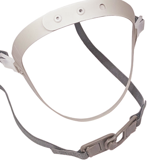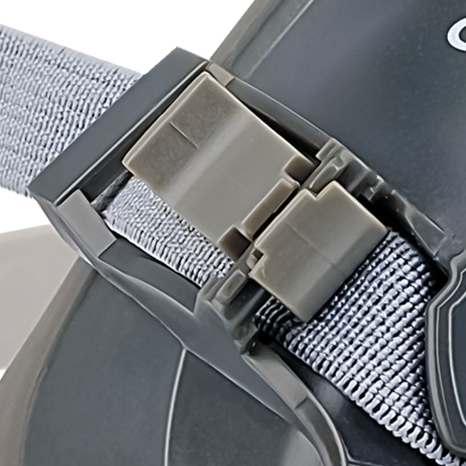Correas elásticas Con un sistema novedoso de ajuste ascendente y descendente (Smart Fit). Con un sólo tirón se ajustan cómodamente y quedan bien aseguradas. Dando la opción de bajar el respirador sin necesidad de retirar el arnés de la cabeza. Además cuenta con 2 clips para una liberación y ajuste rápido de las correas.